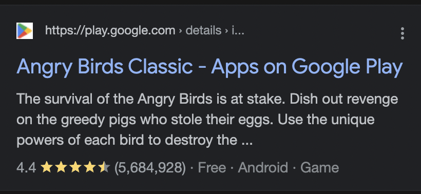 </script>This piece of JSON placed within <script type="application/ld+json" /> tag, describes a software application to have a better representation of it in the list of search results.