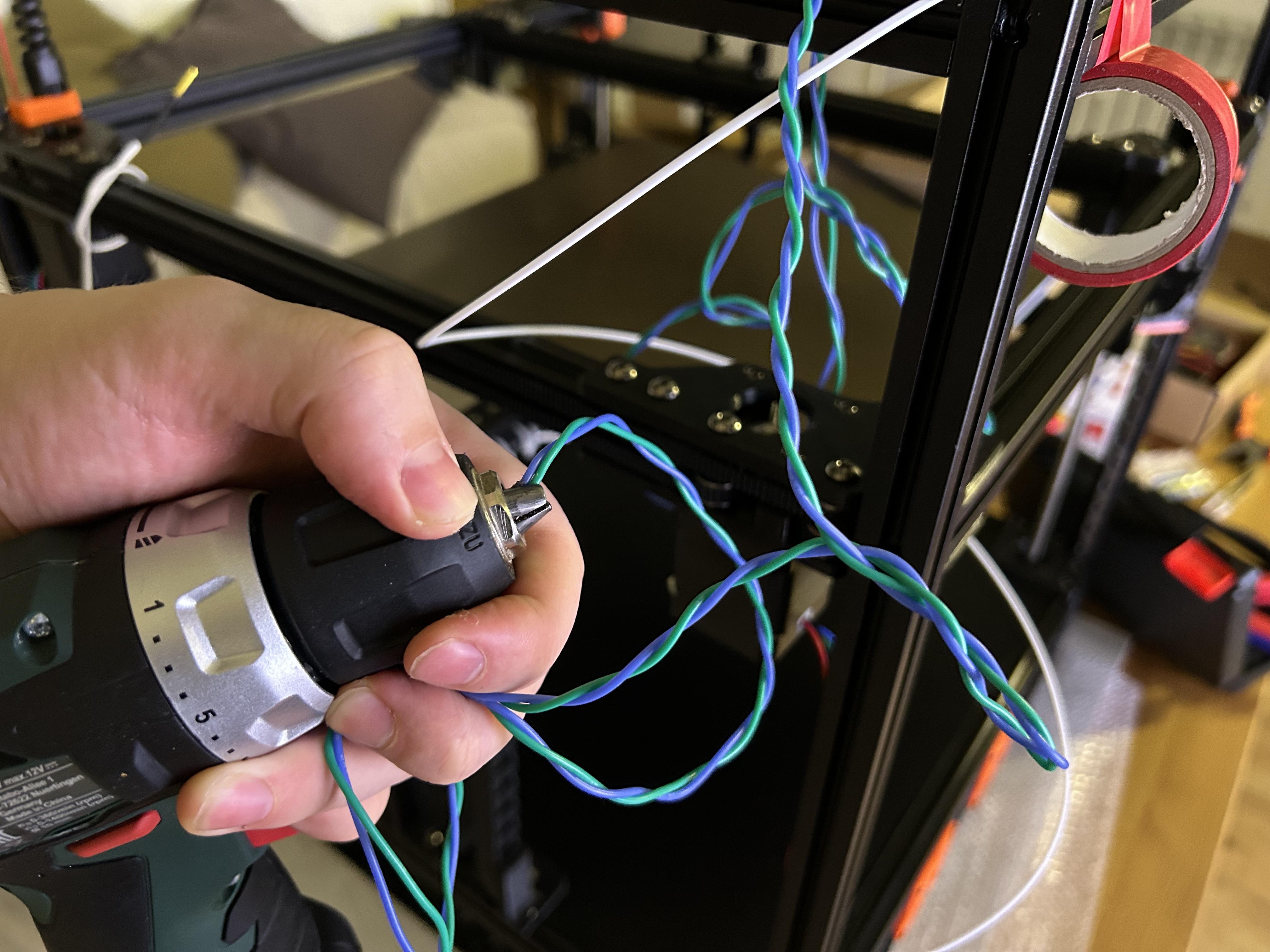 Typically twisted pair cables are used and you can twist them manually using an electric screwdriver. But I would recommend buying an 100W+ Type-C cable what I've done eventually following some advice from the community. Just make sure cable specs are enough for your hotend power requirements.