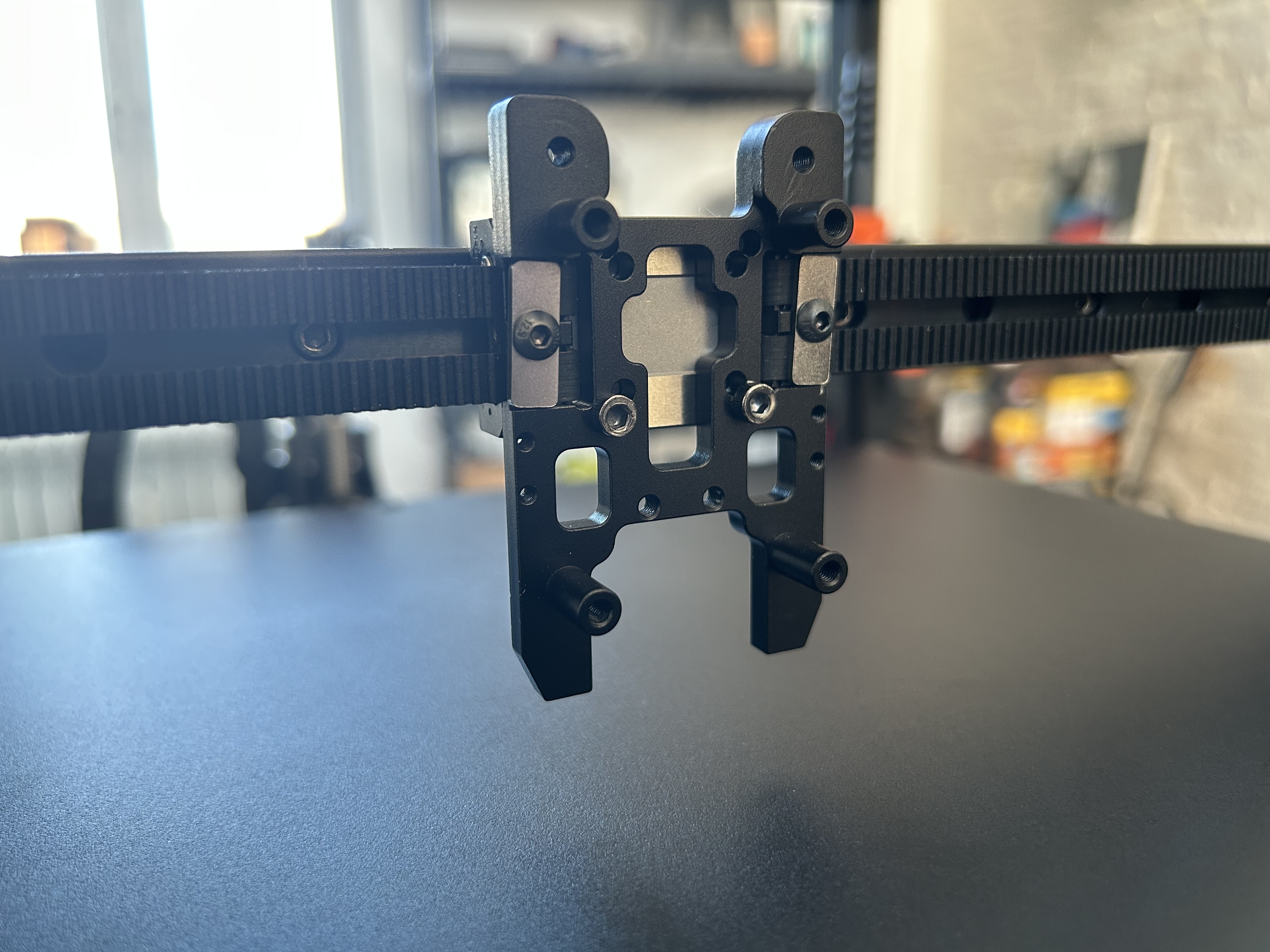 I like the idea to use CNC carriages if possible - they are more rigid and precise compared to 3D printed ones while still being lightweight and not that expensive. Mine is from Fysetc.