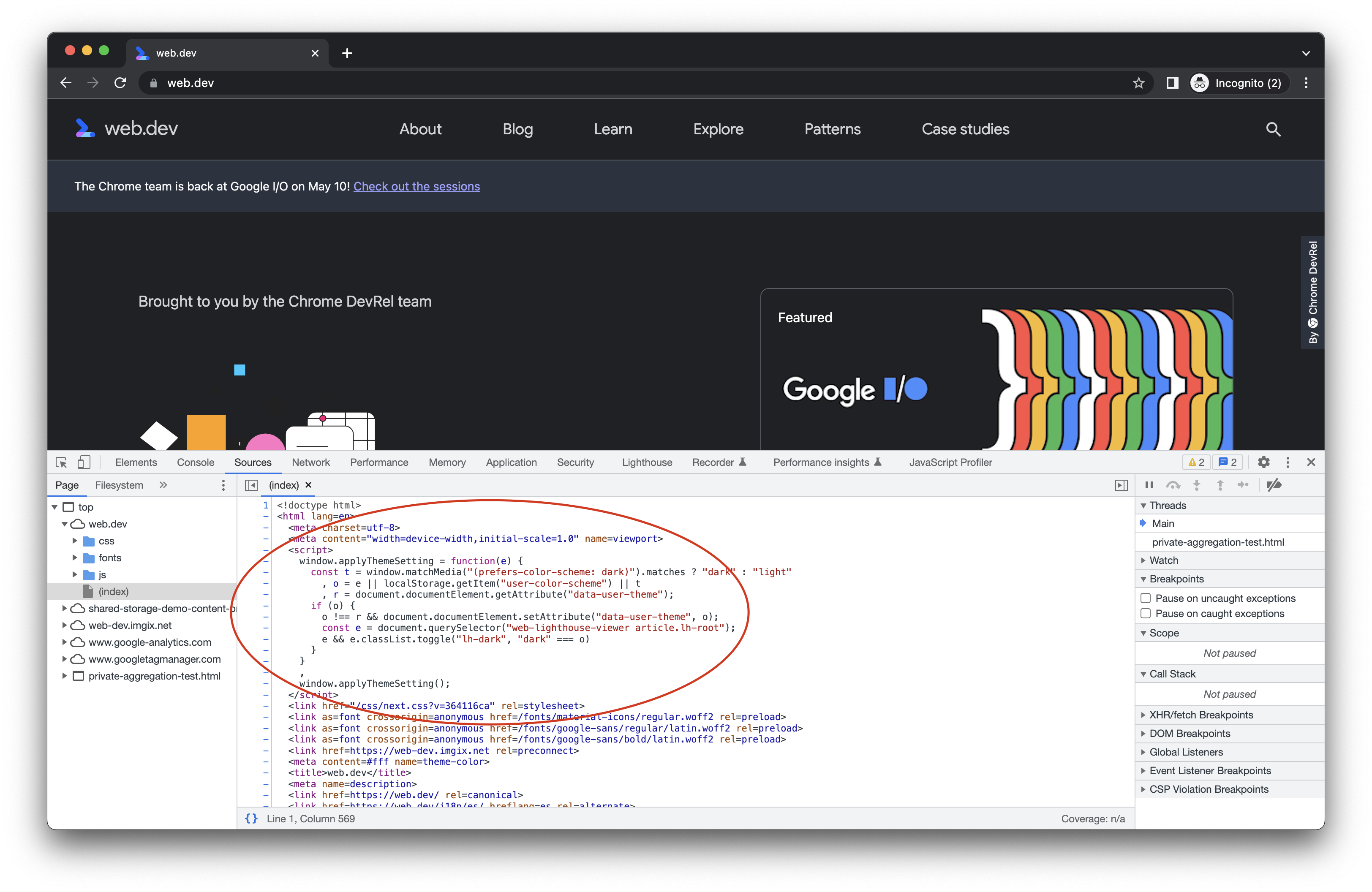 web.dev - render-blocking inline script with localStorage: